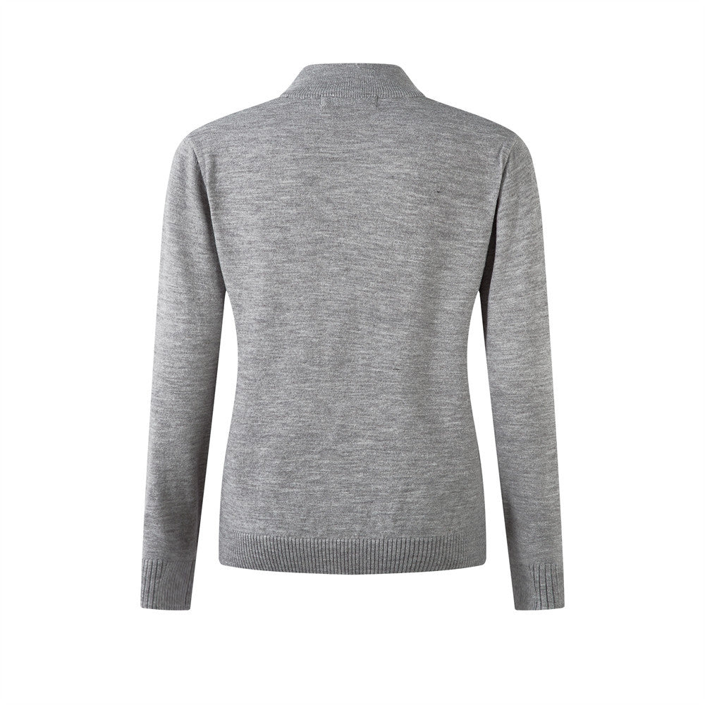 Chic Embroidered Zipper High Neck Sweater Versatile Layering Pullover